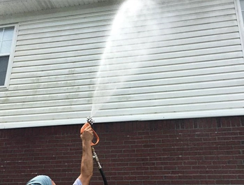 We are cleaning the vinyl, wood, windows, porches, decks, gutters, outdoor furniture, and stucco siding. High-pressure water can remove the paint, damage the wood, and never leave the scratches.